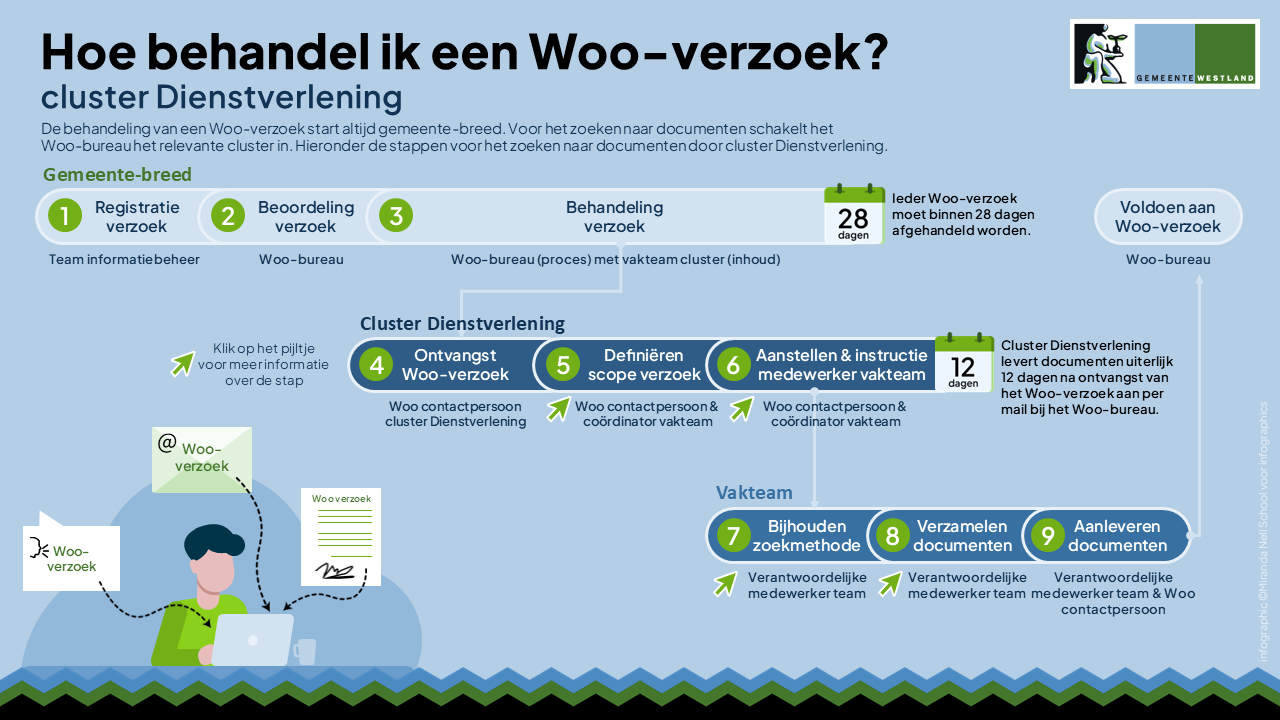 Heb je meer informatie dan er in 1 infographic past? Dan is een interactieve infographic een mooi middel. Door interactie (bijvoorbeeld een klik) komt aanvullende informatie op de infographic tevoorschijn.