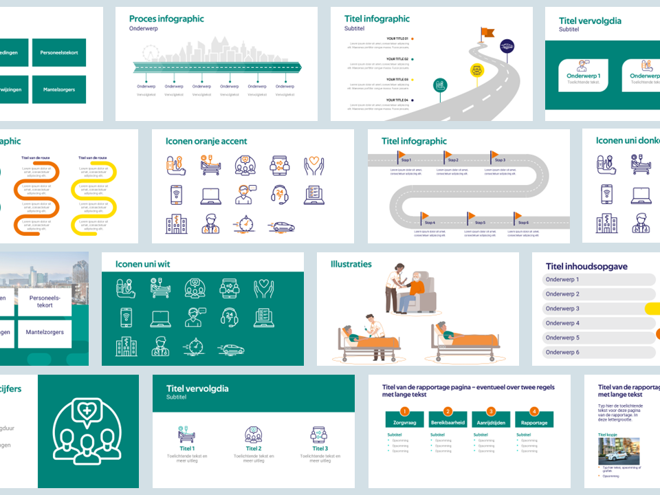 Een set iconen in huisstijl maakt de infographics en presentaties compleet.